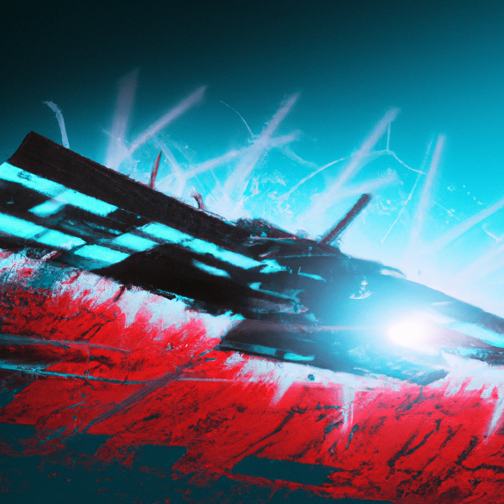 Prompt: In the style of Futurism, the image would depict a futuristic battlefield with AI robot pirate drones dominating the scene. The drones would have sleek, angular designs with glowing blue and red accents, showcasing their advanced technology. They would be engaged in dynamic aerial combat, with trails of laser beams and explosions filling the air. The backdrop would feature a futuristic cityscape, showcasing advanced technology and the golden age of pirates. The overall tone would capture the excitement and power of AI-powered jet drones revolutionizing combat.
