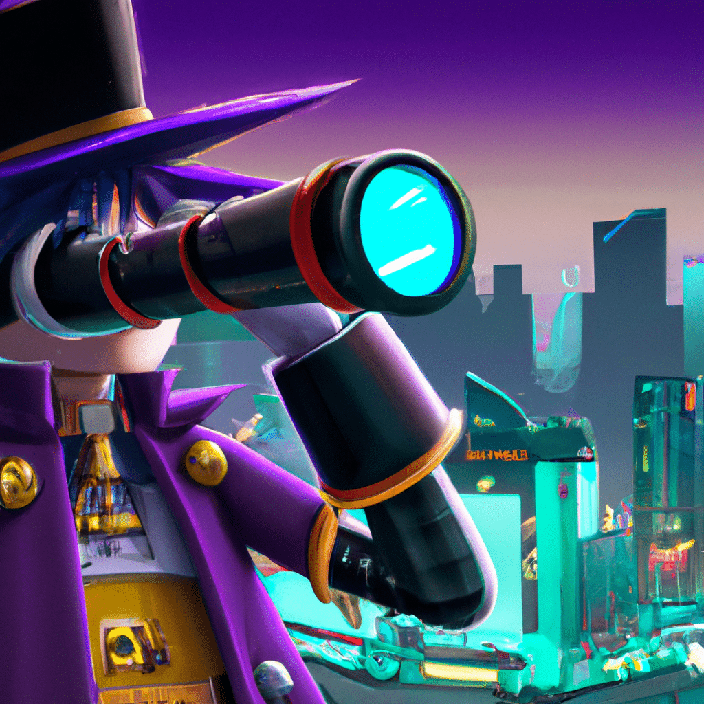 Prompt: This image adopts the Futurism style of art. In the foreground, an AI Robot Pirate from the golden age of piracy is holding a telescope, looking out towards a distant futuristic cityscape. The city is filled with towering buildings adorned with glowing neon lights, representing the AI revolution. One tall building prominently displays a digital billboard flashing the TikTok logo. The pirate robot, adorned with ByteDance’s logo on its metallic chest, exhibits a contemplative expression with a maze of wires and circuitry visible through a glass panel in its head, symbolizing regret for missing out. The sea is depicted as a network of binary code, being navigated by the pirate ship, symbolizing the journey through the digital age.