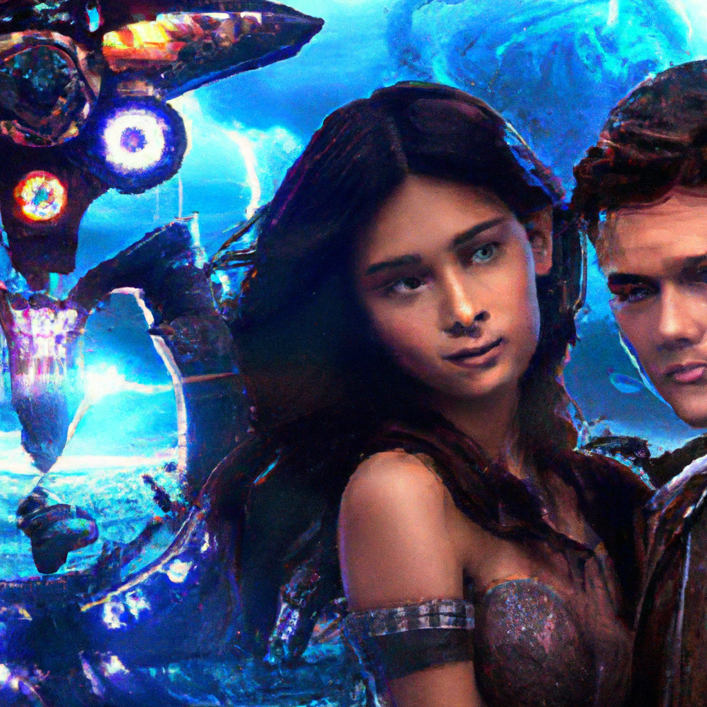 Prompt: In the style of Romanticism, the image would show a dark, stormy night on the high seas. A robotic pirate ship, adorned with rusty metal and glowing AI patterns, sails through tumultuous waves. Demi Lovato, T-Pain, and Troye Sivan, depicted as futuristic AI robot pirates, stand on the deck, their faces hauntingly illuminated by flickering lanterns. Their eyes glow with a mix of curiosity and intensity as they unleash their AI-generated vocals, sending shivers down the spines of all who hear it. The atmosphere is filled with an eerie and electrifying energy, capturing the terrifying twist of their haunting performances.