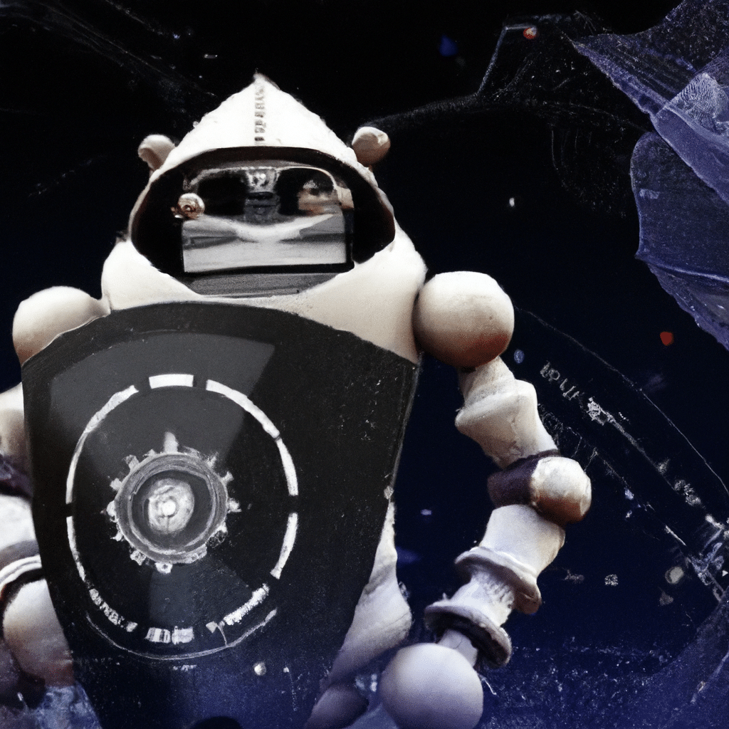 Prompt: Futurism: The image depicts a futuristic AI Robot Pirate captain with gleaming metal arms and glowing eyes, standing on the deck of a high-tech pirate ship. The ship is surrounded by a digital storm, symbolizing the challenges and stakes of regulating AI. The captain is holding a copy of the EU’s AI Safety Bill, signifying the final stages of its development and the important role it plays in shaping AI regulation.