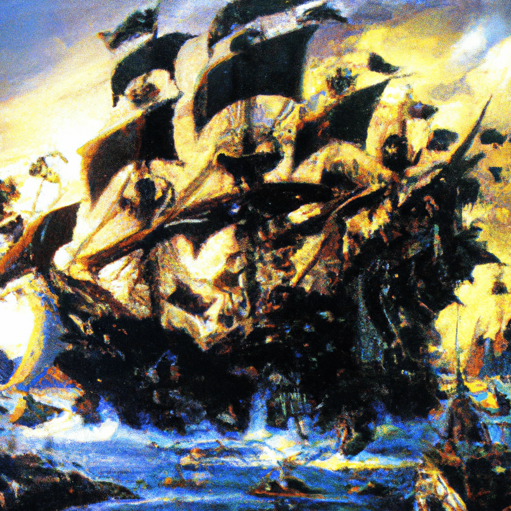 Prompt: In an Impressionistic style, the image would feature a vibrant seascape during the Golden Age of Pirates. The centerpiece would be a majestic AI Robot Pirate ship, adorned with futuristic technologies. The ship’s sails billow in the wind as it glides through the choppy waves. The AI Robot Pirates aboard the vessel are depicted with fluid brushstrokes, showcasing their elegant yet imposing presence. The colors of the sunset dance across the scene, reflecting the golden era of exploration and adventure. It portrays the excitement of encountering the Gemini AI model, hinting at its upgrade surpassing its predecessors. However, the image also showcases the unavailability of this advanced technology in the UK or EU, leaving a sense of anticipation in the air.