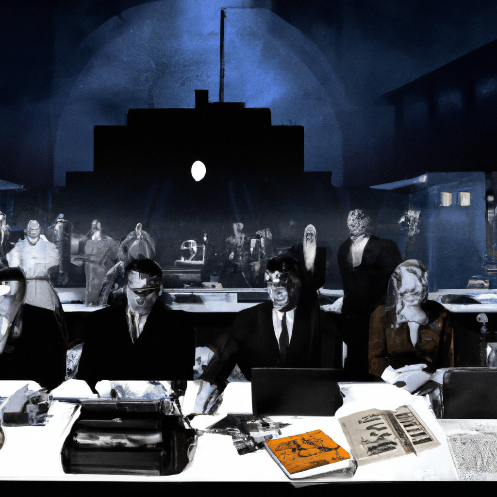 Prompt: The image, done in a Futurism style, would balance the past with a futuristic view. The left half of the frame is filled with a somber, traditional newsroom filled with human journalists, representing Meta’s rejection of Aussie news deals. Each individual is seen working on their typewriter, their faces cast in deep shadows indicating distress and concern. On the right half, there’s a stark contrast as we transition into a futuristic setting. Here, robotic arms are seen manned at shining, backlit screens, scraping digital news articles. Their precise movements are depicted in overlapping waves, symbolising speed. At the center of the divide, a large AI robot, attired like a Golden Age pirate, tiptoes the line, one hand holding a historical newspaper and another manipulating a holographic screen, symbolising the profound shift from old to new. The image is vibrant with bold lines and dynamic shapes, depicting the chaotic shift in the media industry.