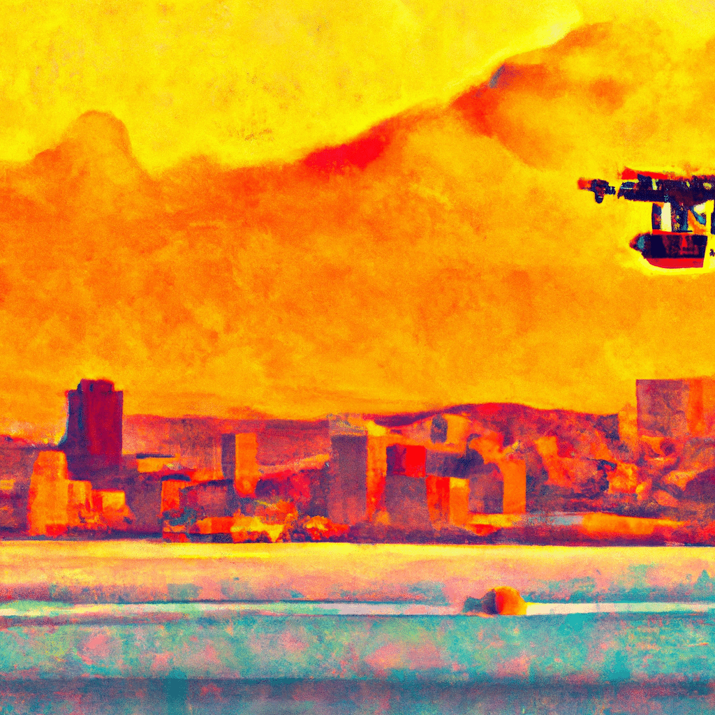 Prompt: In an Impressionism style, this image would feature the iconic San Francisco skyline, bathed in the orange hues of sunset with the famous Golden Gate Bridge visible in the far distance. In the foreground, a police drone is visible, seamlessly blending modern technology with the old-world charm of the city. The drone is portrayed with quick, flowing brushstrokes to showcase motion as it patrols the empty streets below. The drone would be metallic and sleek, bearing a distinct badge indicating it’s part of the police force. There would be an element of movement in the picture, showing the drone moving towards a crime scene, to illustrate its role in crime prevention.