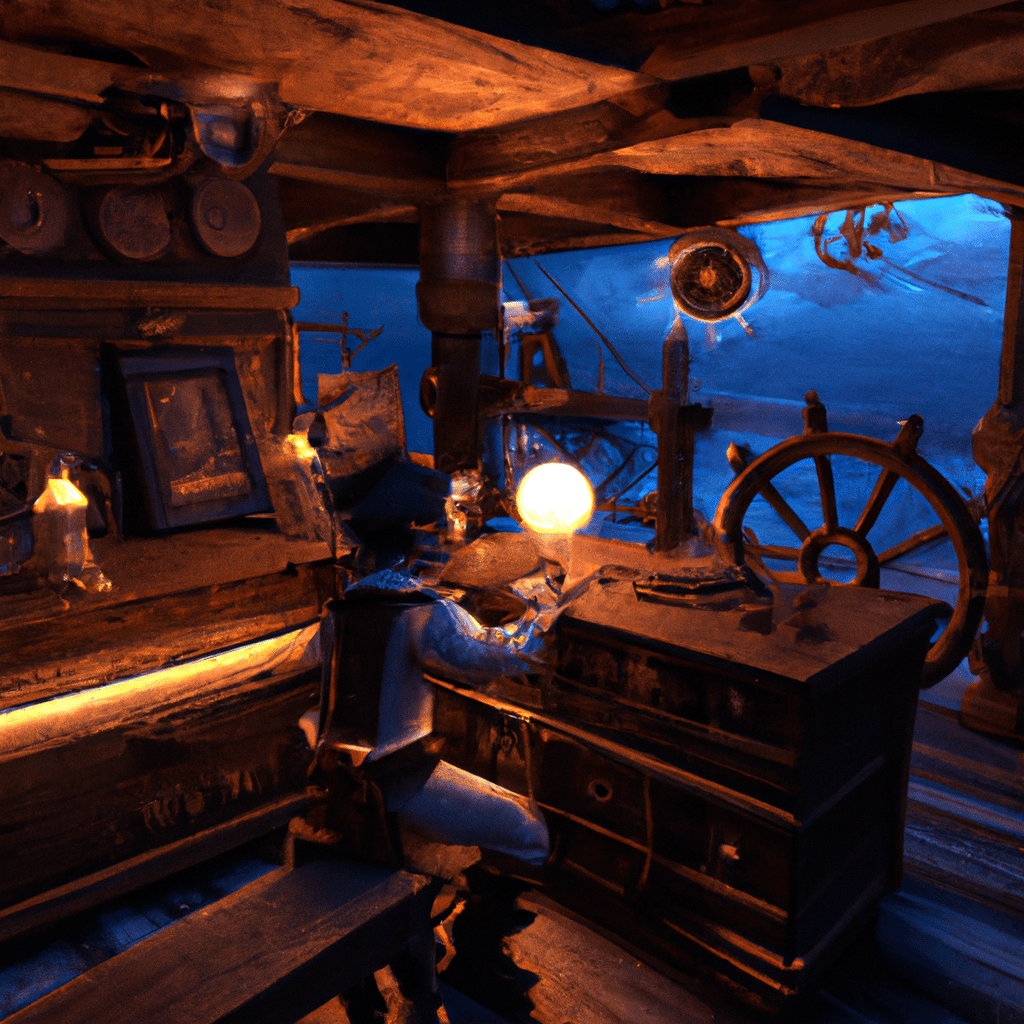 Prompt: The image portrays a scene in the style of Realism. It’s set in a dimly lit 18th-century ship cabin, with nostalgic wooden walls, maps, a globe, and navigational tools scattered around. In the center, an AI Robot Pirate, designed in a steampunk style with parts like old clocks, cogs, gears, and metals from the Golden Age of Pirates, is intently analyzing some sort of futuristic biometric device. This device is glowing with holographic personal data, like fingerprints and retinal scans, illustrating the unlawful processing of information. The robot pirate’s metallic hand is reaching towards the data, whilst its eyes glow with the same hue, suggesting an unallowed transfer of sensitive data.