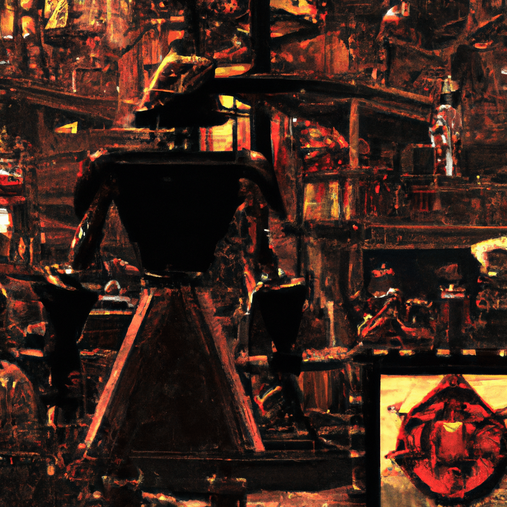 Description: The image depicts a bustling, crowded marketplace during the Golden Age of Pirates. In the foreground, an AI robot pirate stands tall and intimidating, with metallic limbs and an advanced surveillance system integrated into its structure. The robot pirate’s eyes glow with a red light, scanning the surrounding area for potential threats. In the background, shoppers go about their business, unaware that they have been misidentified by the surveillance system as “persons of interest.” The realistic details capture the expressions of confusion and concern on the faces of the misidentified individuals, as the AI pirate robot keeps a watchful eye on them.