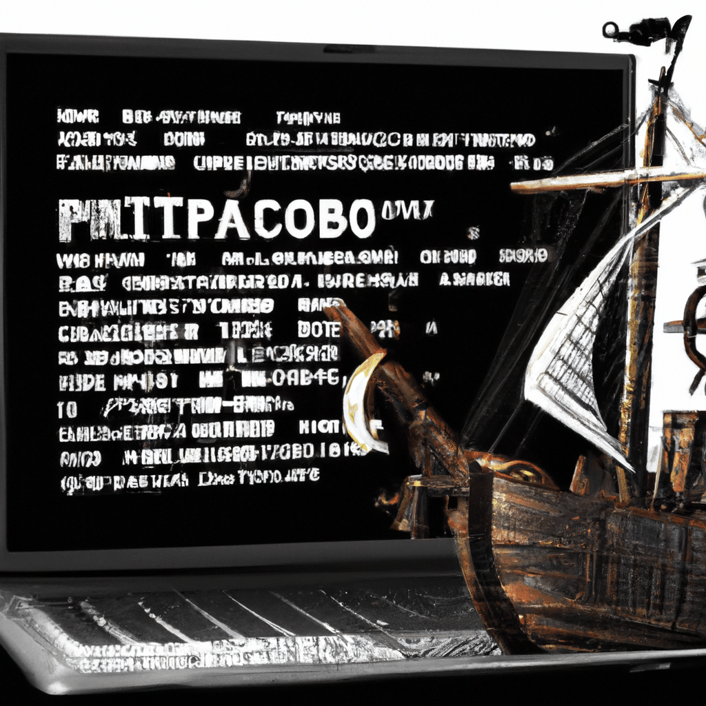Prompt: In a Realistic style, the image portrays an expansive pirate ship sailing on a sea of digital code. Etched onto the ship’s sails depicting ones and zeros are the silhouette of a robot pirate, with a hook for a hand holding a glowing laptop. The screen projecting a set of headlines filled with exaggerated phrases – clear indications of clickbait. In the forefront, a crowd of disorganized domain names floats in the sea, suggesting squatted domains. The background shows the Golden Age’s nostalgic scenery of tall ships and sun setting over still waters, with a twist of futuristic elements like holograms and digital projections.
