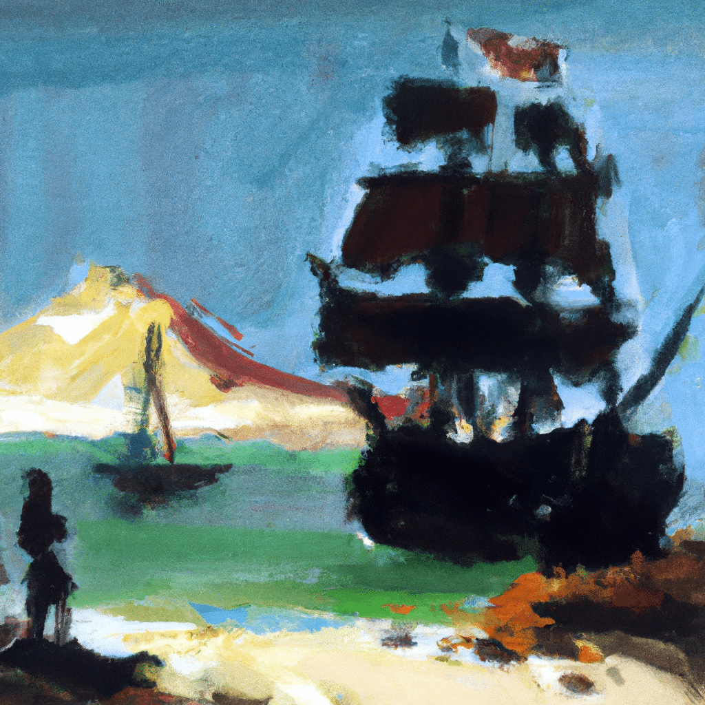 Prompt: In a beautiful Impressionistic artwork, we see a picturesque seaside scene during the Golden Age of Pirates. The vibrant colors and loose brushstrokes capture the essence of a calm and serene ocean. In the distance, a futuristic AI robot pirate ship, adorned with intricate metallic details, sails away into the horizon. The CEO, depicted as a mysterious figure, stands on the ship’s deck, contemplating their departure. The painting creates a sense of intrigue and uncertainty, reflecting the confounding conflicts of interest that led to this peculiar moment.
